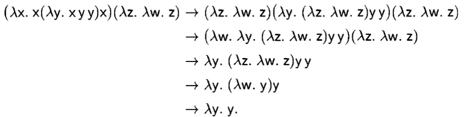 - (λu.λv.v)((λx.x x)(λx.x x))→(λu.λv.v)((λx.x x)(λx.x x))...